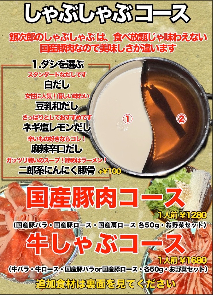 しゃぶしゃぶコース始まります