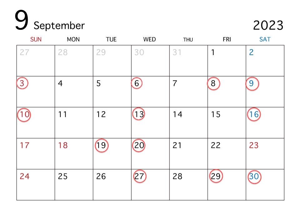 9月の営業日程